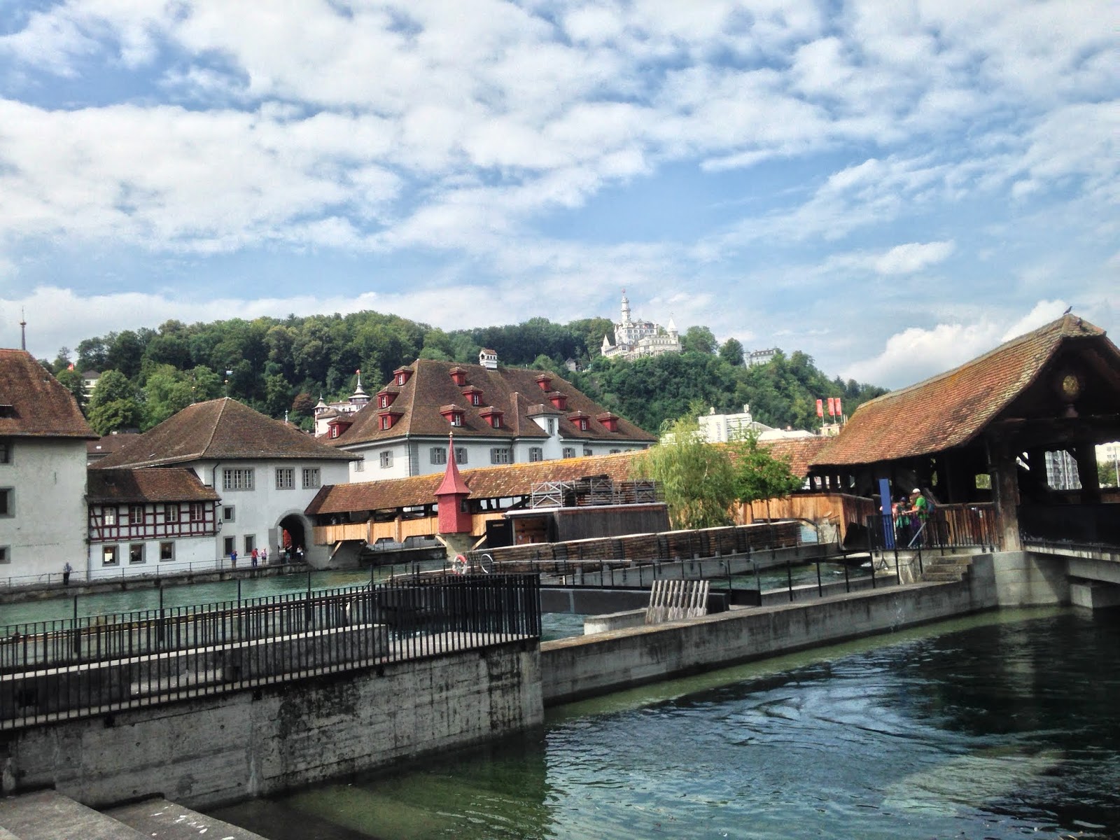 Bright sunny morning when we woke up. After breakfast at the Hotel we headed for the railway station and caught a train to Luzern. The journey took about 45 minutes. Swiss trains always run on time. Went into the tourist information office on arrival and picked up a map, then headed for the old town. Discovered this lovely covered bridge - apparently the longest in Switzerland. Spent time walking around the old town - Brian was a bit disappointed - it was not as extensive as he had anticipated. I guess we were spoilt by the size of the Zurich old town. Eventually found our way to a walk around the town walls with all their very Swiss towers.